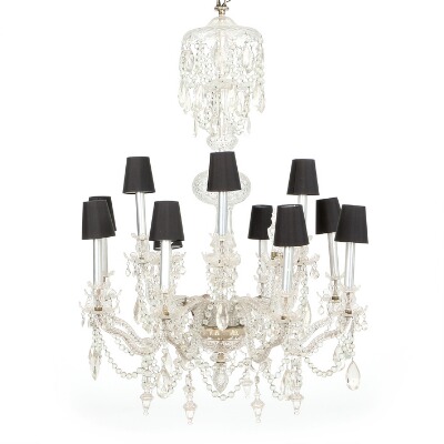 A large 12-light crystal chandelier with baluster shaped stem