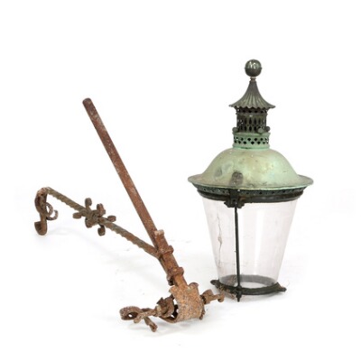 A large copper wall lamp-post. Iron mounting. Denmark, late 19th century. Total height 160 cm.