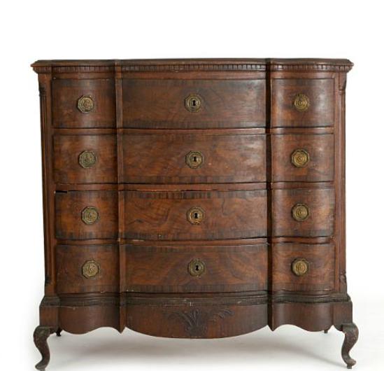 A large Danish baroque oakwood chest of drawers
