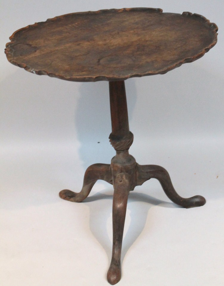 the circular pie crust top raised on a baluster column terminating in triple cabriole supports
