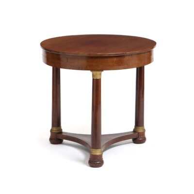 A late 19th century Empire style mahogany table, column legs with bronze capitals