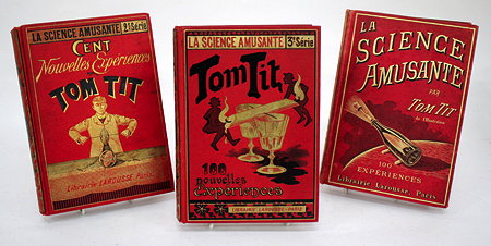 A LATE 19TH CENTURY FRENCH COPY OF TOM TIT 'La Science Amusante', A Hundred New Experiences, published by Larousse in three volumes and with red ground parcel gilt decorative covers (3)