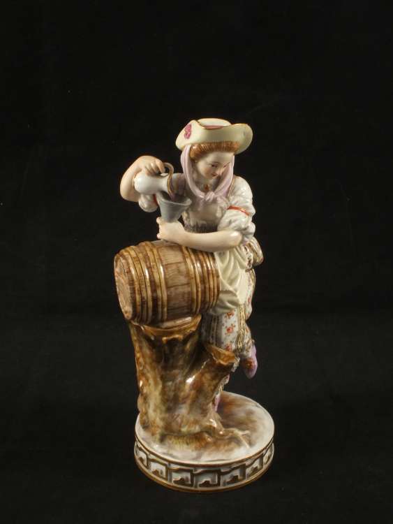 A late 19th Century Meissen figurine of a girl filling a barrel