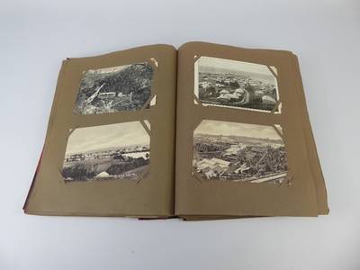 A Leather-Bound Book of Early 20th Century Postcards (inscribed to front, 'From Father and Mother to Lily on her Birthda