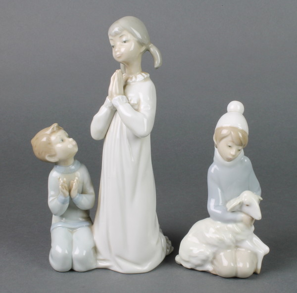A Lladro figure group of 2 children praying 8 1/2" and a ditto of a young boy with lamb