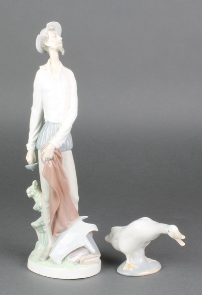 A Lladro figure of a goose 7", a ditto figure of Don Quixote