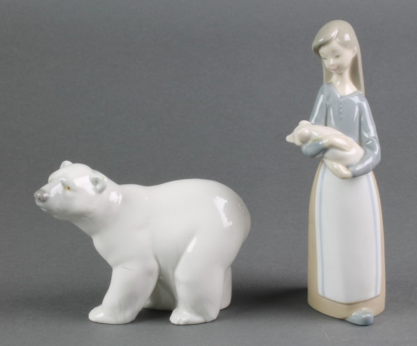 A Lladro figure of a standing polar bear A14M 4" and a ditto of a girl with piglets 6 1/2" SOLD £30