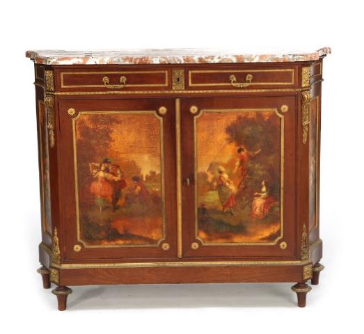 A Louis XVI style mahogany meuble d'Appui with gilt bronze mountings and marble top