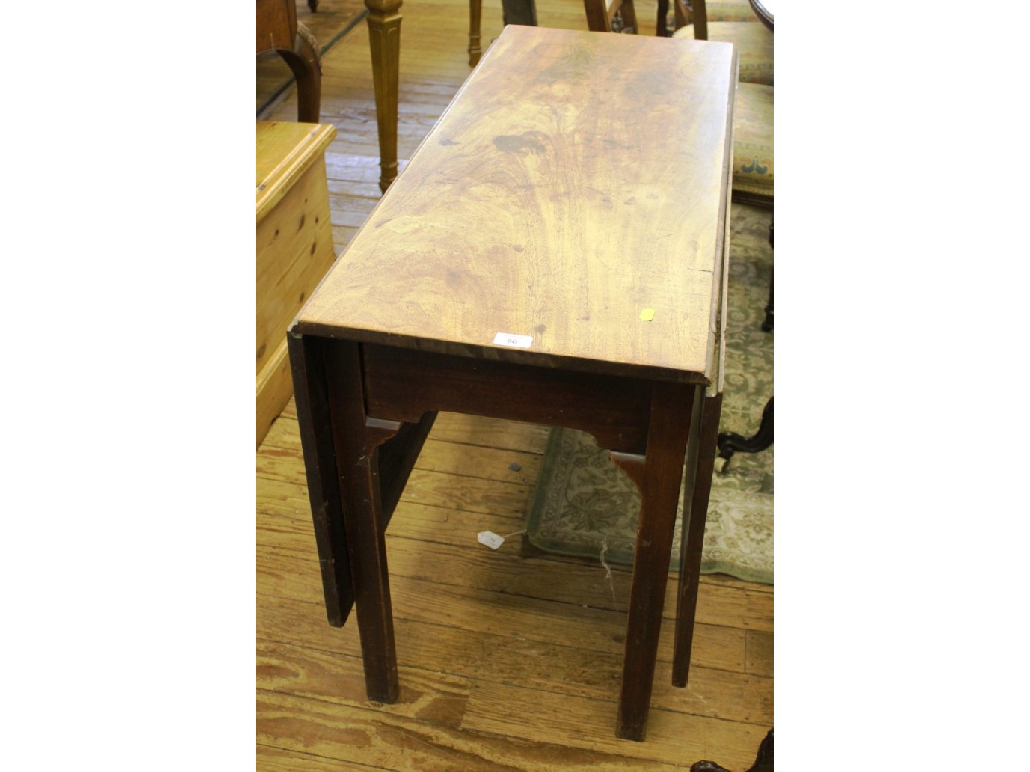 A mahogany drop leaf dining table, 18th century parts, the rectangular top on chamfered square legs