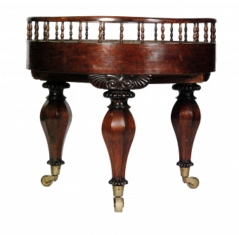 A mahogany galleried jardiniere centre table of circular form