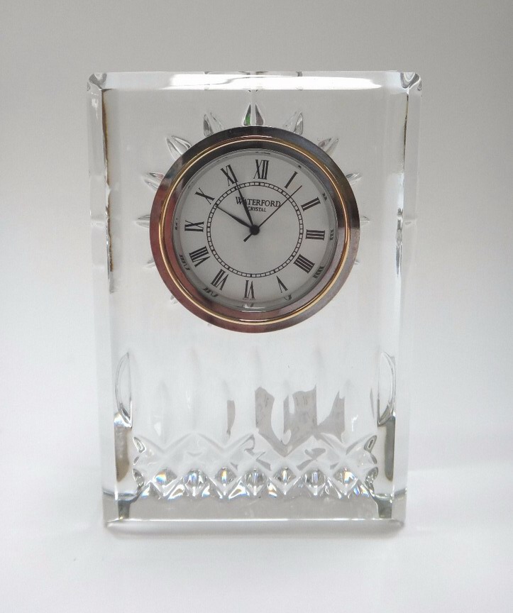 comprising; a decanter and stopper, six tumblers, six smaller tumblers, a clock and a comport