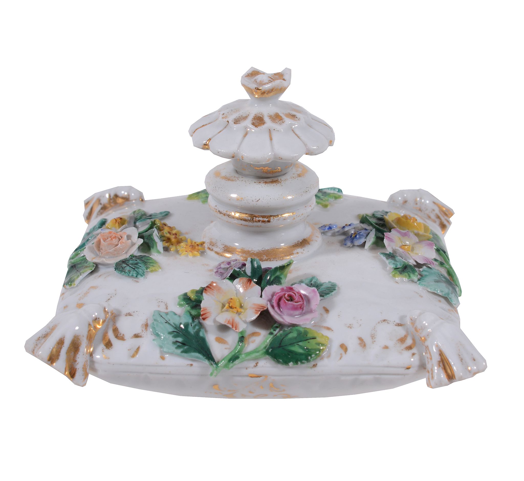 A Meissen model of a flower-encrusted scent bottle annd stopper
