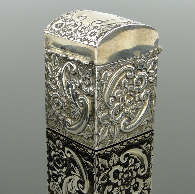 A miniature Edwardian silver dome top playing card case