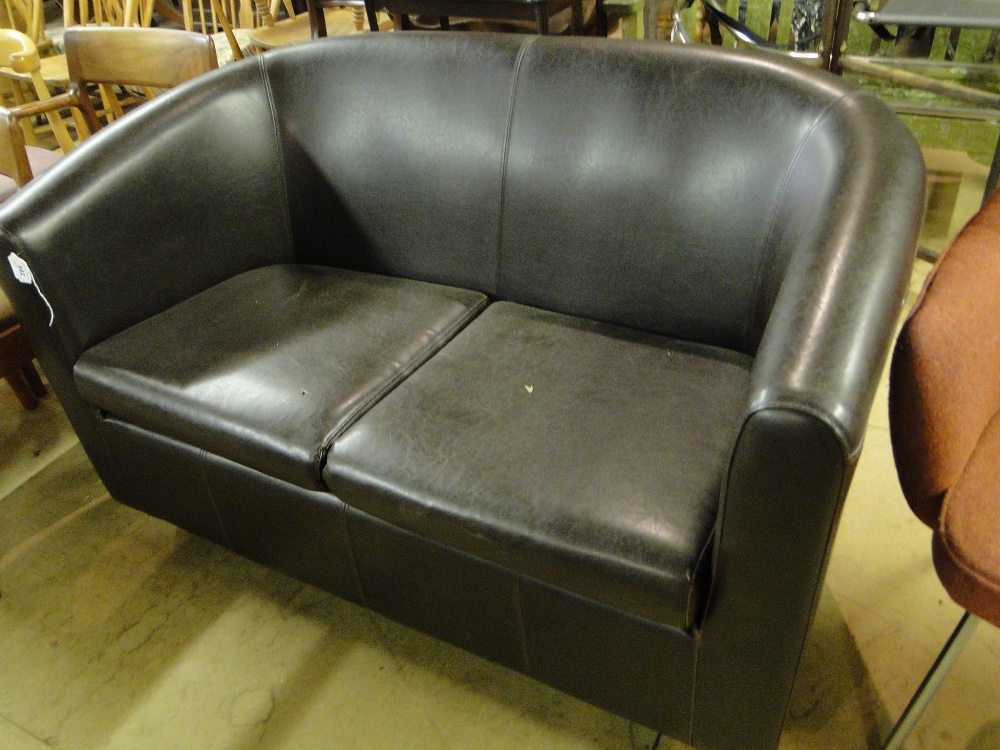 A modern brown leather upholstered 2-seater sofa.