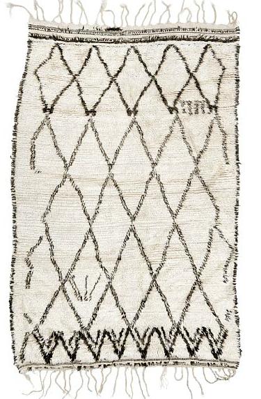 A Moroccan tribal carpet from the Beni Ouarain tribe. Made in black and white wool