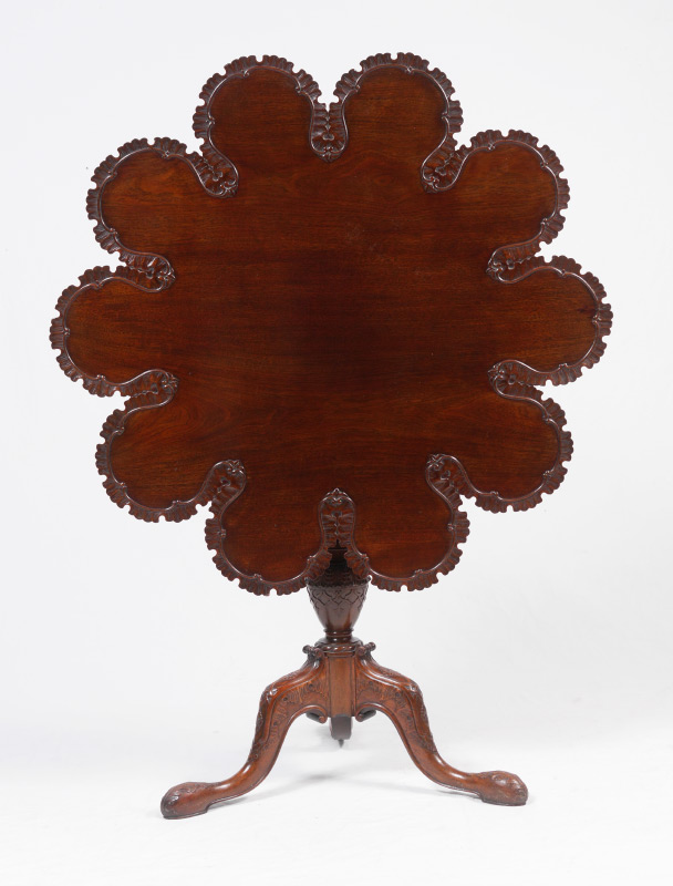 A MOST UNUSUAL SCALLOPED EDGE PIE CRUST TILT TOP TABLE