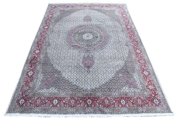 A Moud "palads" carpet, medallion design with ornaments, flowers and foliage on light base