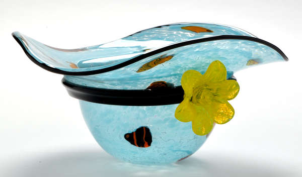 A Murano glass hat bowl, decorated with millefiori and yellow flower
