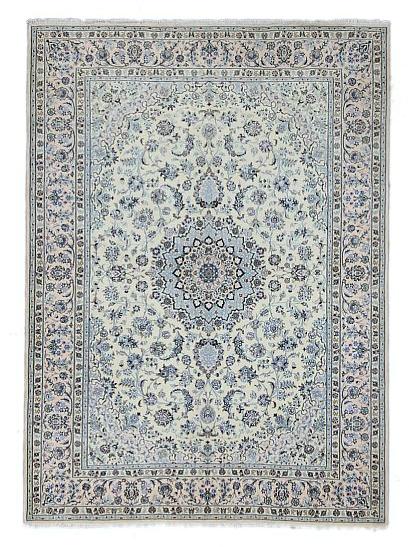 A Nain rug, Persia. Medallion design, outlines with silk pile