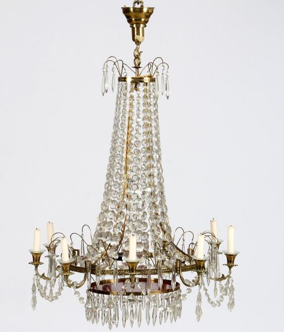 A nine-light Empire style crystal chandelier