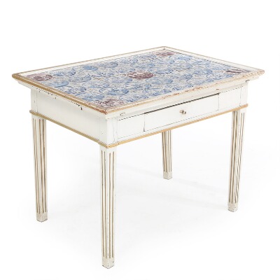 A painted Danish Louis XVI tile-top table with 35 Dutch fayence tiles