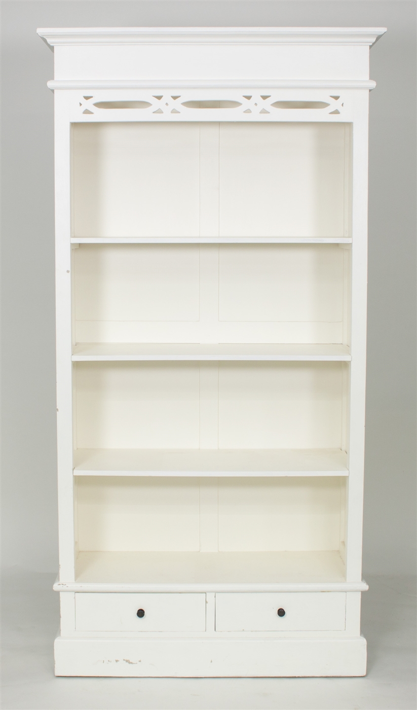 A painted open bookcase,