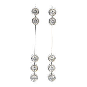 Each designed as a series of three brilliant-cut diamonds, suspended on a knife-edge bar, to the similarly-cut diamond line surmount. Estimated total diamond weight 1.20cts, I-J colour, SI1-P1 clarity. Hallmarks for Birmingham. Length 4cms. Weight 4.