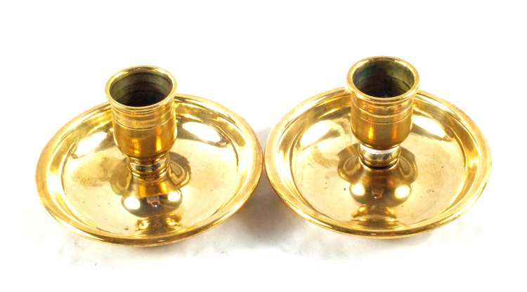 A pair of 19th Century Brighton bun travelling Brass candlesticks