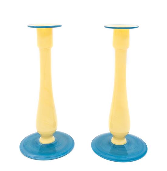 A Pair of American Blown Glass Candlesticks