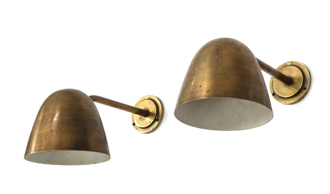 A pair of brass wall lamps