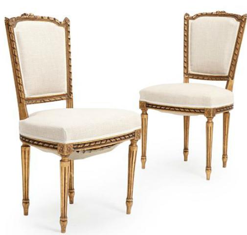 A pair of circa 1900 gilded and carved Louis XVI style side chairs