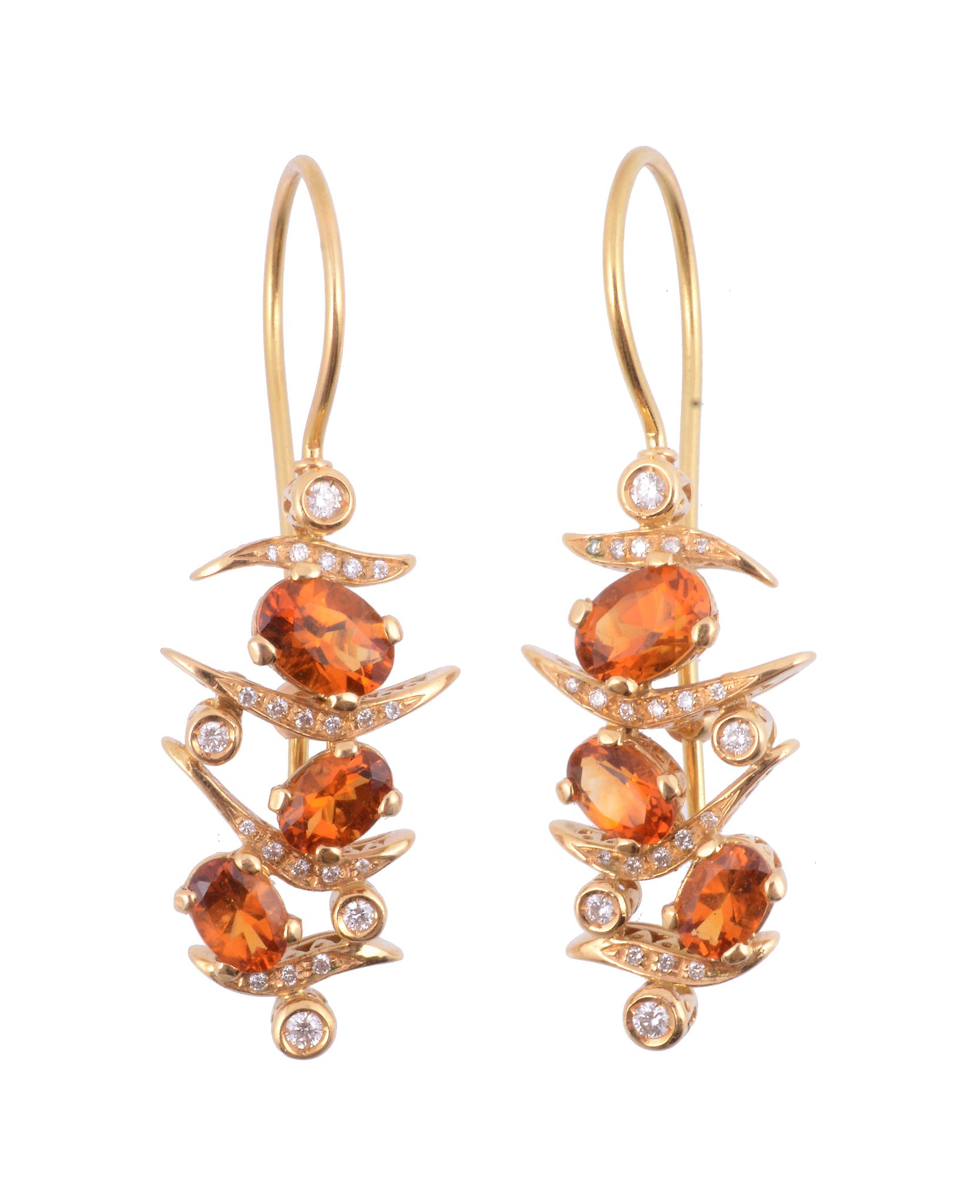 the oval shaped citrines with diamond accented curved bars between, stamped 750 with Italian control marks, 4.2cm long
