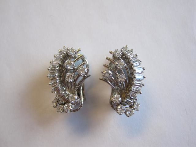 A pair of Diamond Earrings each claw-set an arc of graduated baguettes