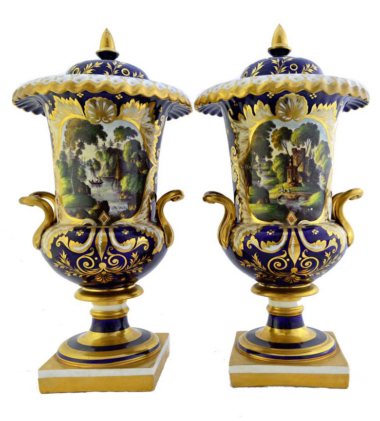A pair of English porcelian pot pourri vases and covers