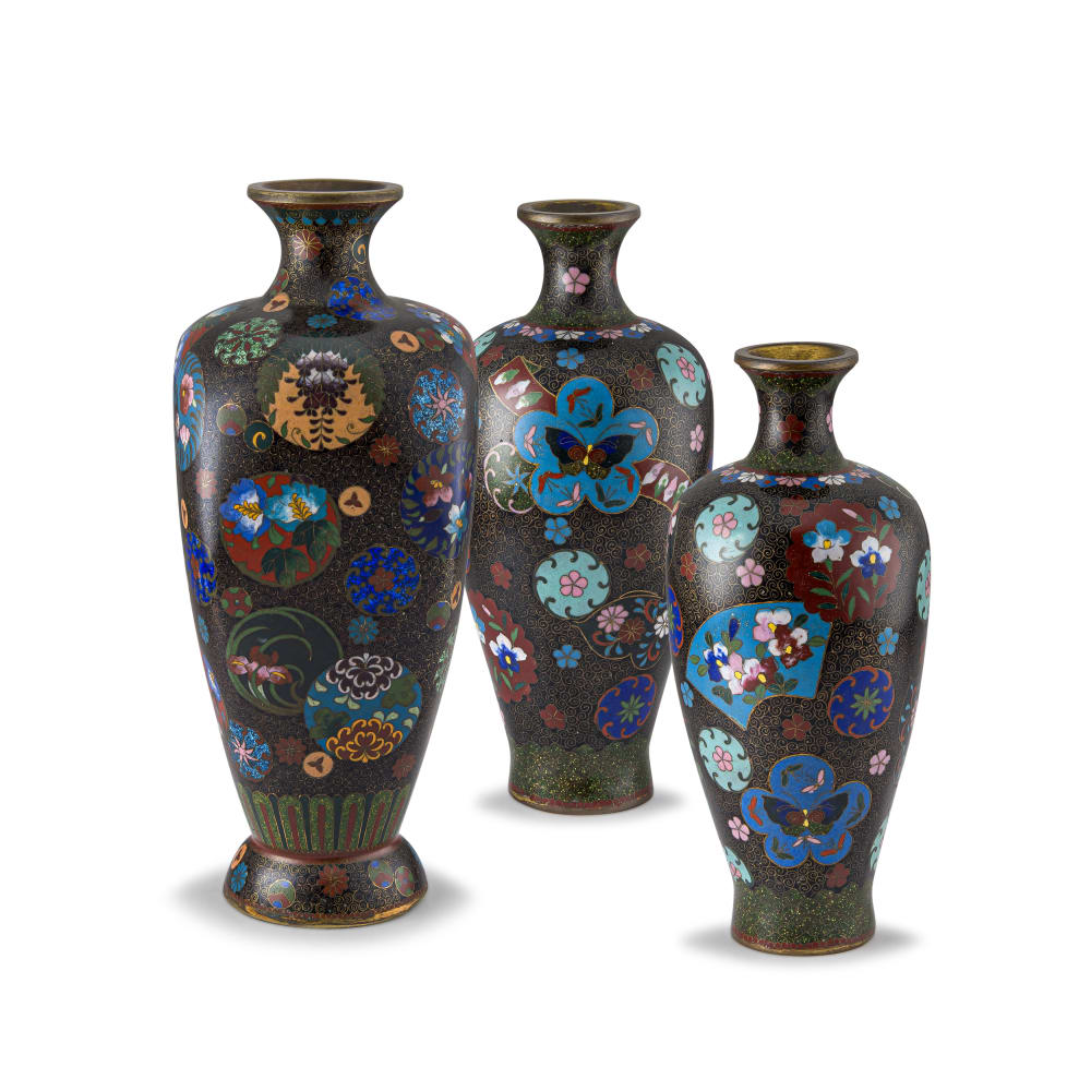 A pair of Japanese cloisonné enamel vases, Meiji period, 1868-1912