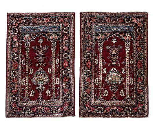 A pair of Kashan rugs, Persia. Arch design with hanging oillamp and flowers