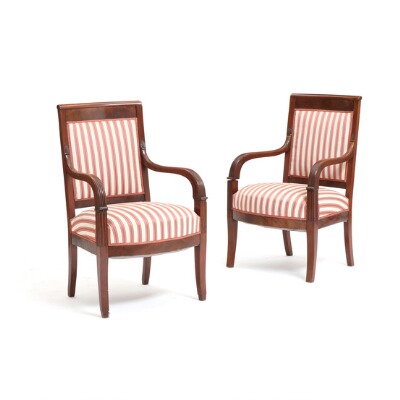 A pair of late 19th century Charles X style mahogany armchairs. (2)