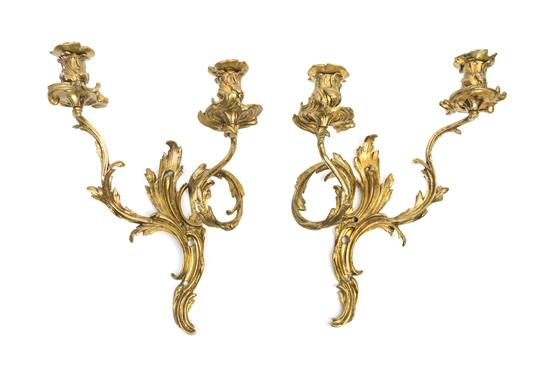 A Pair of Louis XV Style Gilt Bronze Two-Light Sconces