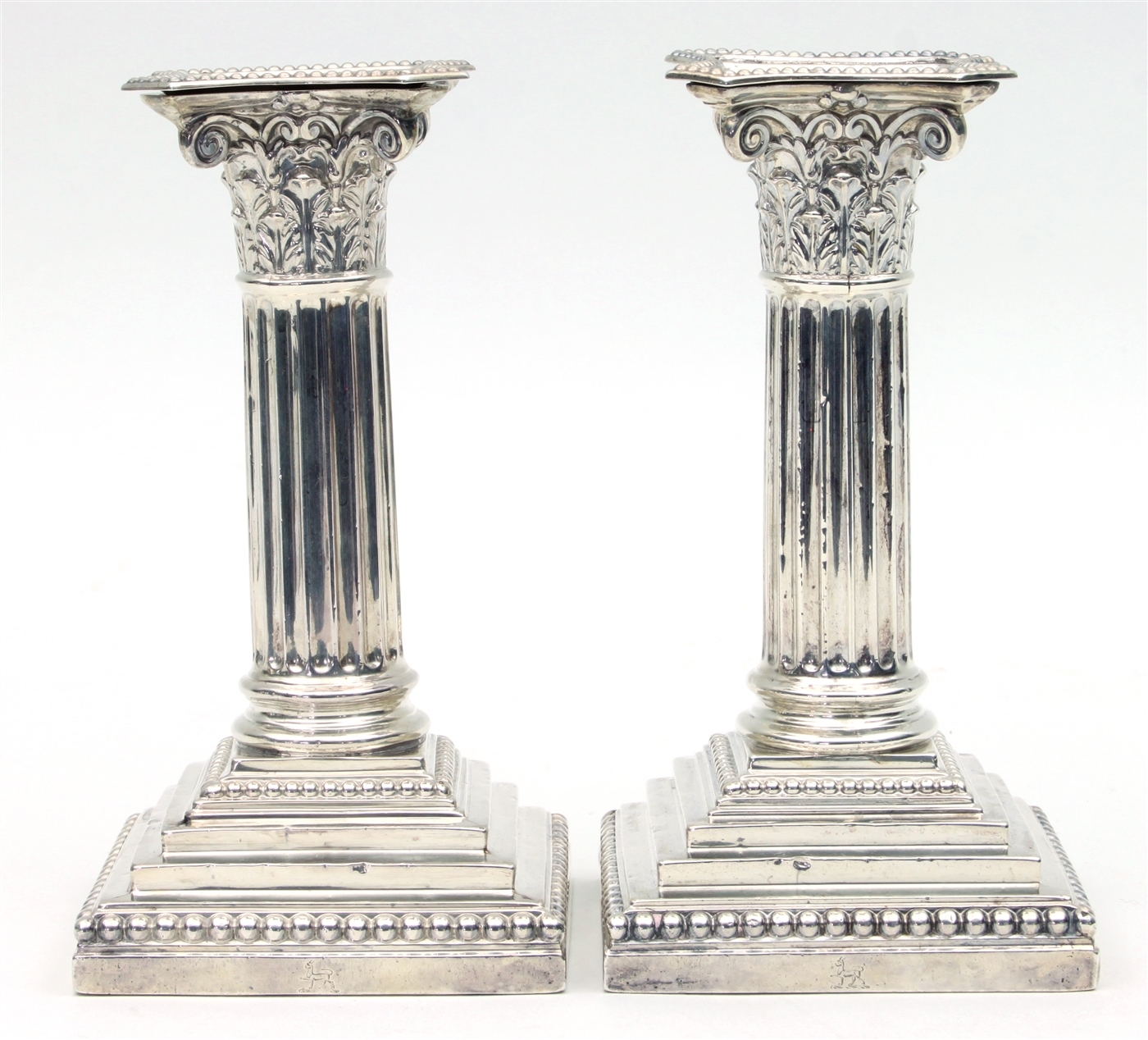 Sheffield 1894, of Corinthian column form with beaded borders to the stepped square base