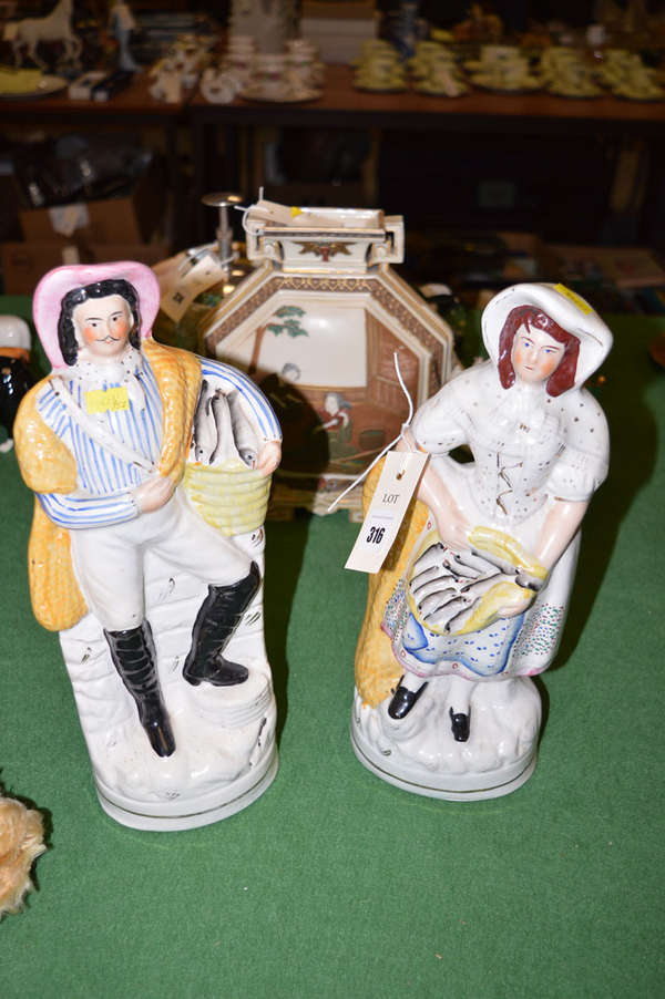 A pair of Staffordshire pottery figures, a fisherman and a fisherwife.
