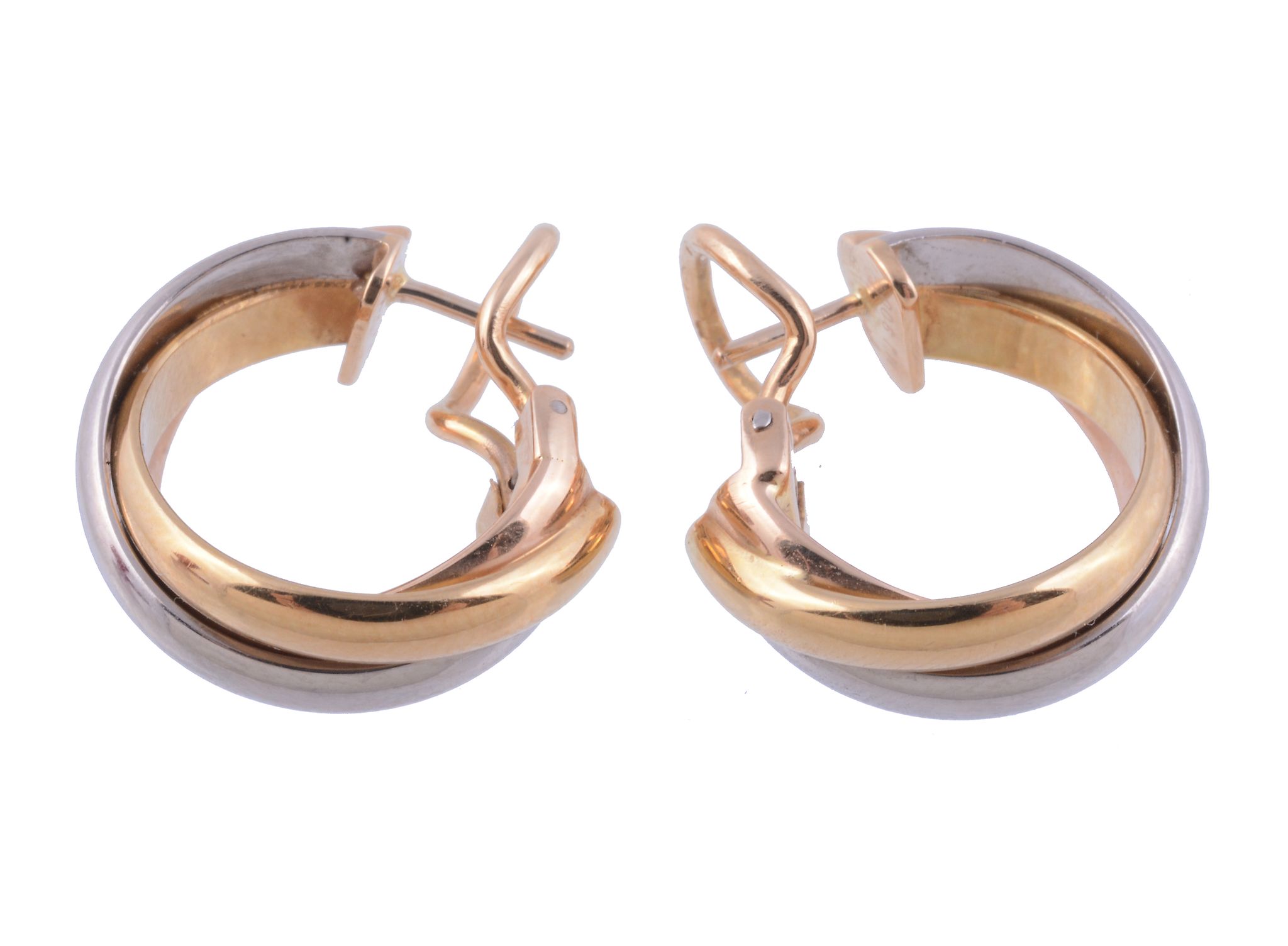 the three colour hoops signed Cartier and numbered MJ 900, with French Poincon, 2cm long, with original box and certificate
