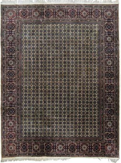A Persian carpet, most likeliy Sahrbaf eller Mashad. All over rosettes on an ivory field. Good quality, fine wool