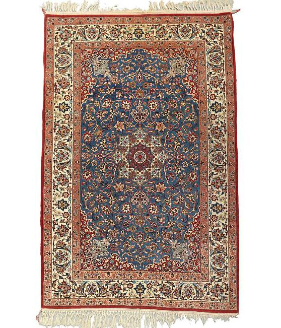 A Persian Isfahan rug on silk warps, embellished with ornamentation,