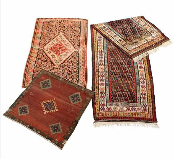 A Persian Luri Bakhtiari fragment, Senneh Kilim and a Kurdish Kilim runner, classic design
