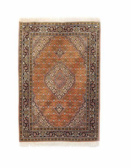 A Persian Täbriz rug, medallion design with flower sand foliage on reddish base