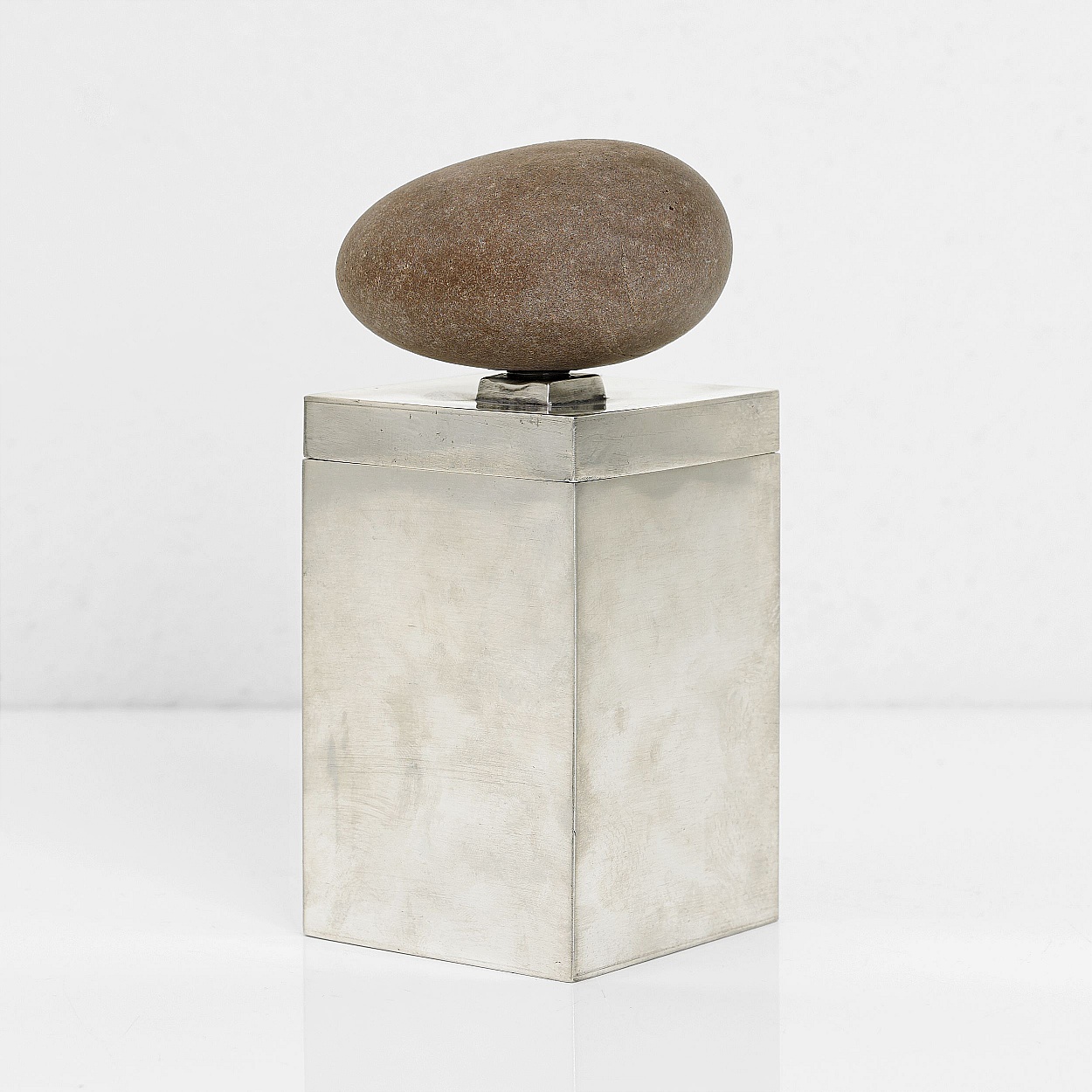 GAB, a powter box with granite, Stockholm 1934, marked GAB Tenn H8, h 18 cm
