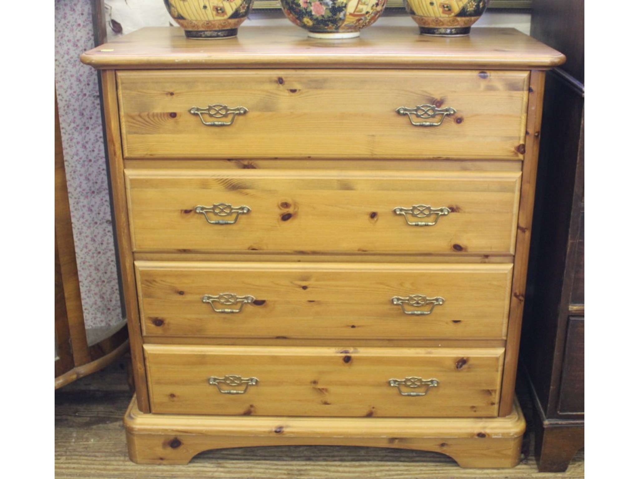 A pine chest, with four long drawers and bracket feet