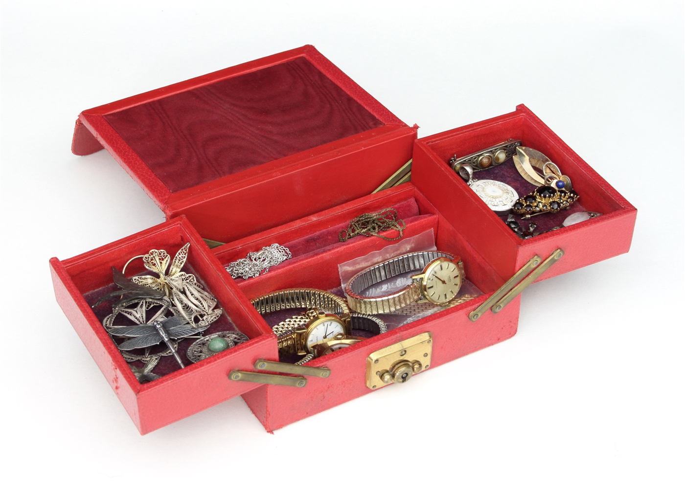 A quantity of costume jewellery including filigree brooches, a silver cross