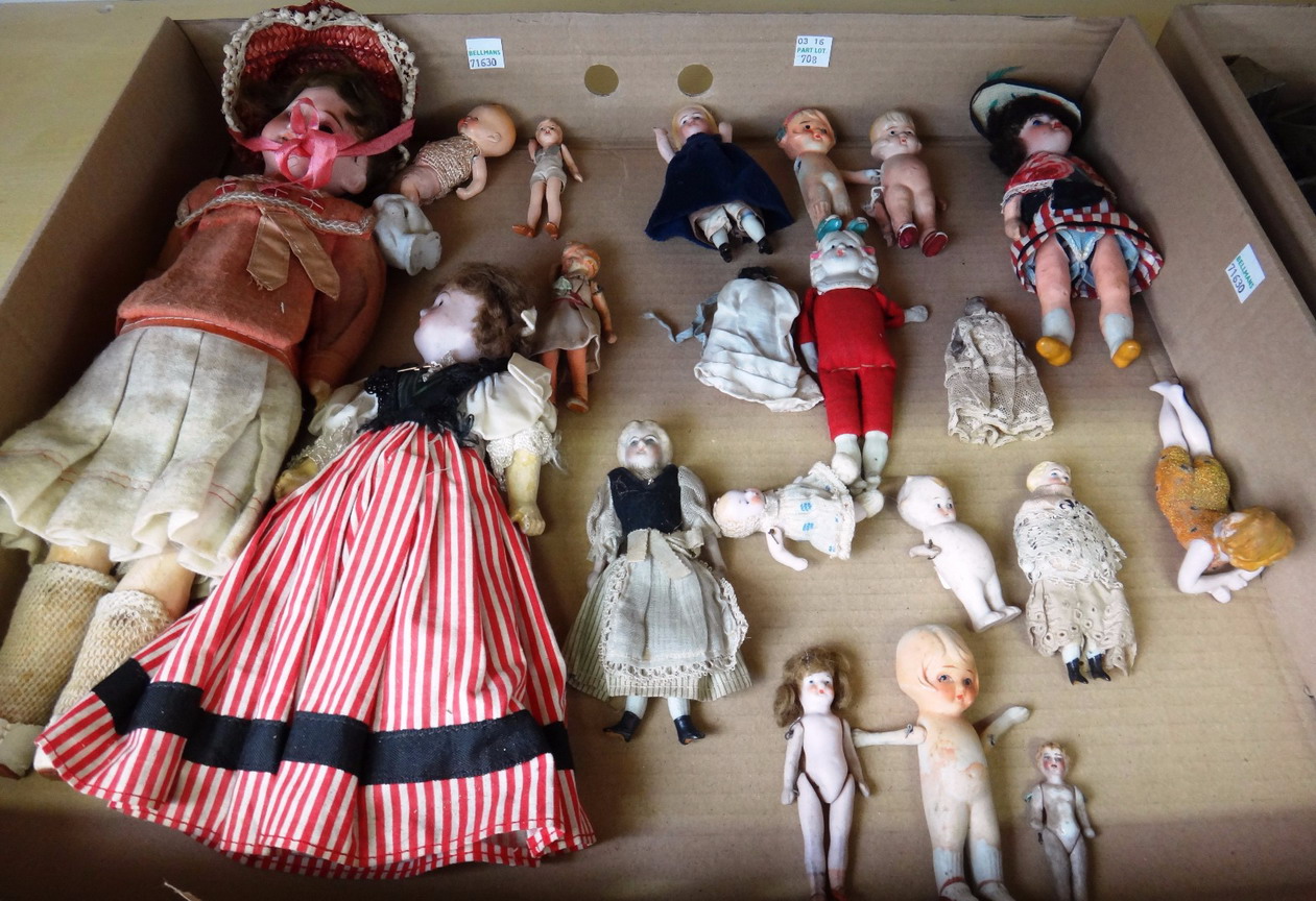 including 'Kewpie' type dolls, French and German examples, and two larger dolls