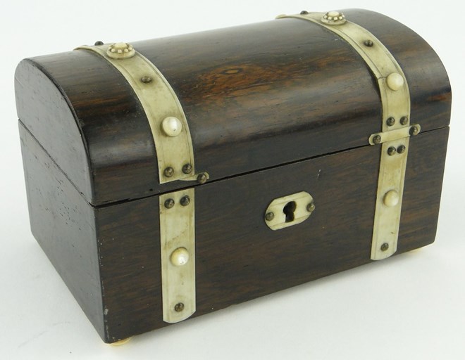 A rosewood box with ivory strap work